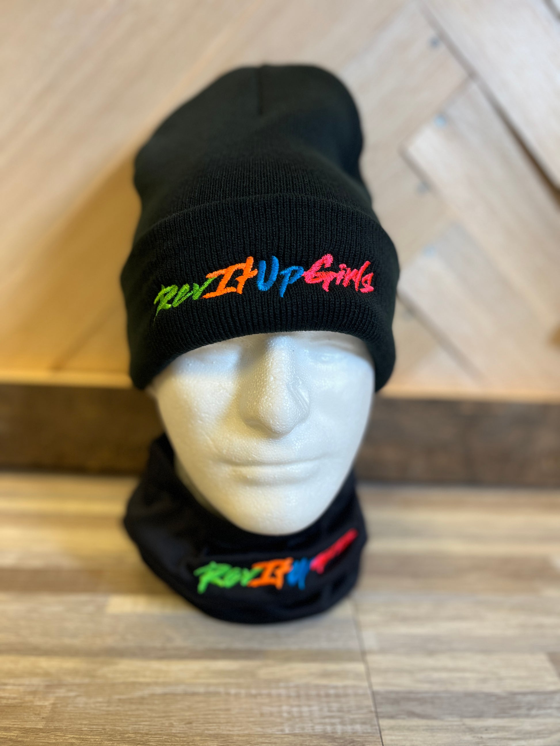 Lined beanie, embroidered with the RevItUpGirls logo.